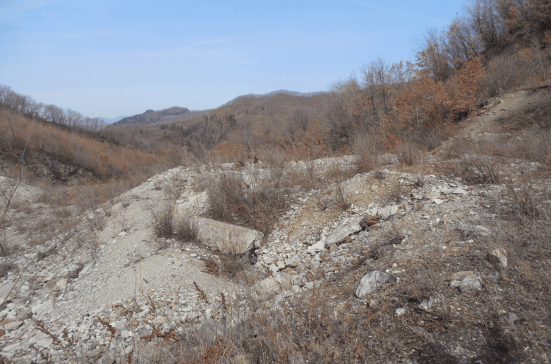 孟昭奎老人又带着笔者来到了沟口深处,看到了当年日本人开办的医院、太平房的残破墙体、墙基。从山上砍柴回来、孟昭奎的婶婶、72岁的梁淑梅老人告诉笔者:当年,她的二叔就在矿上给索道做维护,一次在给索道的轮子注油时,不小心从架子上掉下来摔死了。孟昭奎指着选矿地点前方的一个小山头说,那个小山头就是当年立有索道架子的地方,现在上面还有支架子的水泥基础呢。当年这个地方还没有本桓公路,而是很宽的河道,河里的水量还很大。只是选矿地方的山脚下有一条能走马车的路,是通向马鹿沟的。后来修本桓公路,才占用了旧河道,又推出了新的一条河道,就是现在已经干枯了的河道。